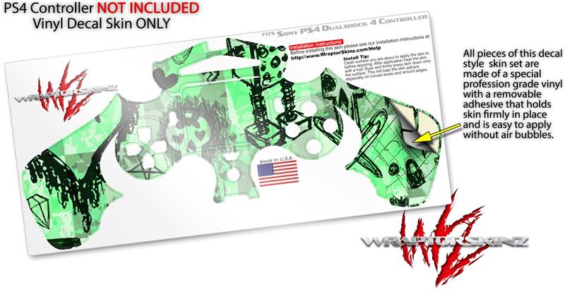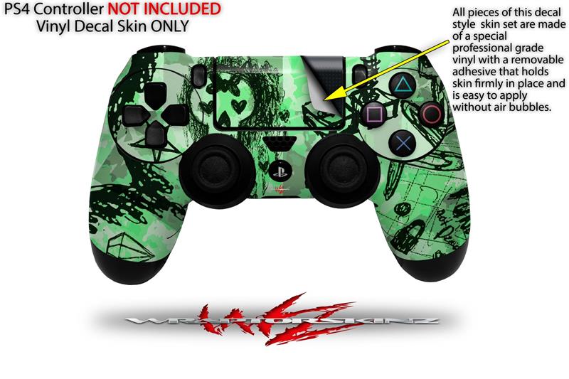 WraptorSkinz Skin compatible with Sony PS4 Dualshock Controller PlayStation 4 Original Slim and Pro Scene Kid Sketches Green (CONTROLLER NOT INCLUDED)
