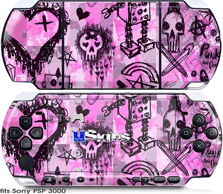 Sony PSP 3000 Skin - Scene Kid Sketches Pink
