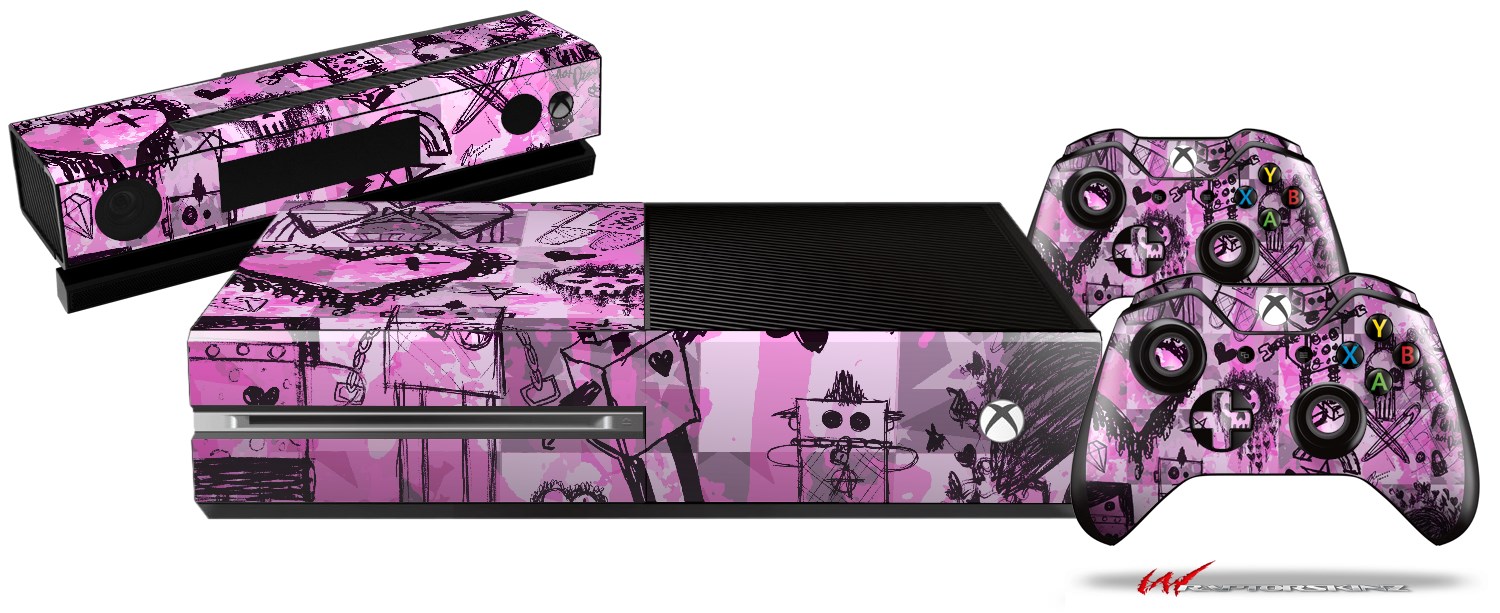 Scene Kid Sketches Pink - Holiday Bundle Decal Style Skin fits XBOX One Console Original, Kinect and 2 Controllers (XBOX SYSTEM NOT INCLUDED)