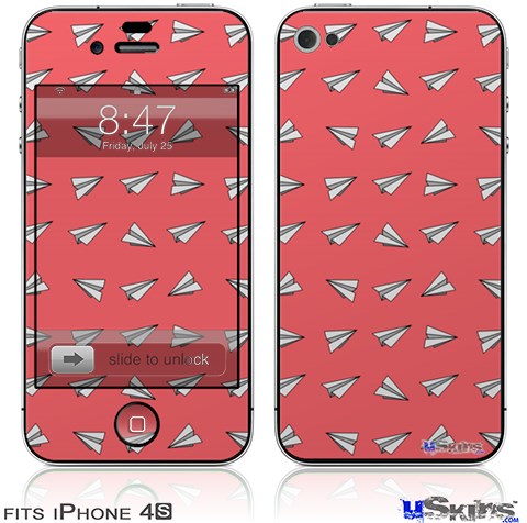 iPhone 4S Decal Style Vinyl Skin - Paper Planes Coral