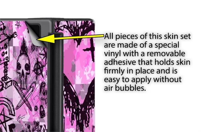 WraptoSkinz™ skins are superb photo quality designs and vibrant colors printed with special Eco-Friendly, fade resistant inks. Our skins are self-adhering flexible vinyl skins that helps prevent scratches. Made of composite, multi-layered commercial grade materials. The bottom layer is made with a special removable adhesive that is easily positioned and applied without air bubbles. We print your design on the bottom layer then bond a professional grade laminate over the entire skin adding a glossy protective finish.