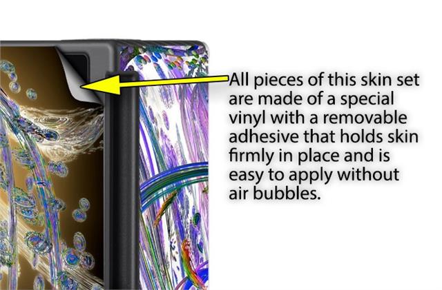 WraptoSkinz™ skins are superb photo quality designs and vibrant colors printed with special Eco-Friendly, fade resistant inks. Our skins are self-adhering flexible vinyl skins that helps prevent scratches. Made of composite, multi-layered commercial grade materials. The bottom layer is made with a special removable adhesive that is easily positioned and applied without air bubbles. We print your design on the bottom layer then bond a professional grade laminate over the entire skin adding a glossy protective finish.