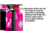 WraptoSkinz™ skins are superb photo quality designs and vibrant colors printed with special Eco-Friendly, fade resistant inks. Our skins are self-adhering flexible vinyl skins that helps prevent scratches. Made of composite, multi-layered commercial grade materials. The bottom layer is made with a special removable adhesive that is easily positioned and applied without air bubbles. We print your design on the bottom layer then bond a professional grade laminate over the entire skin adding a glossy protective finish.