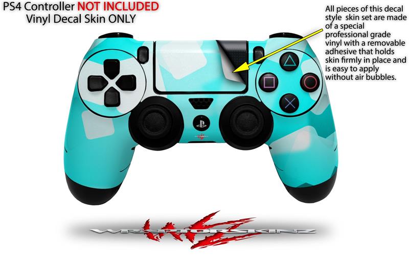 WraptorSkinz Skin compatible with Sony PS4 Dualshock Controller PlayStation 4 Original Slim and Pro Bokeh Squared Neon Teal (CONTROLLER NOT INCLUDED)