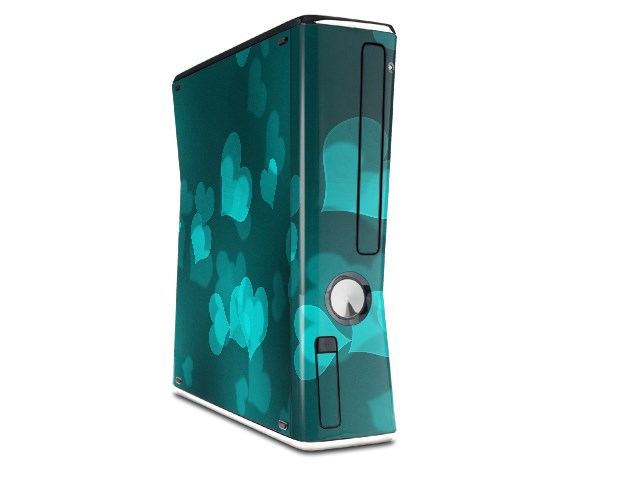 Bokeh Hearts Neon Teal Decal Style Skin for XBOX 360 Slim Vertical