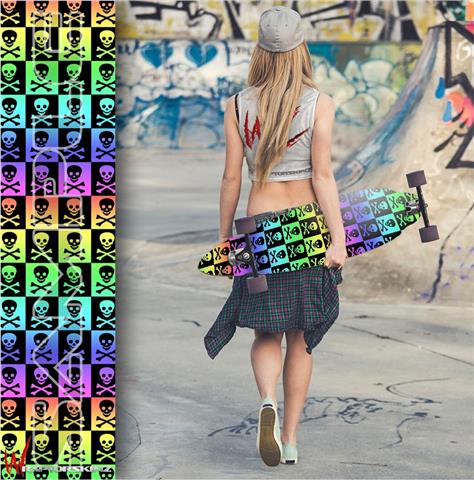 Skull Checkers Rainbow - Decal Style Vinyl Wrap Skin fits Longboard Skateboards up to 10"x42" (LONGBOARD NOT INCLUDED)