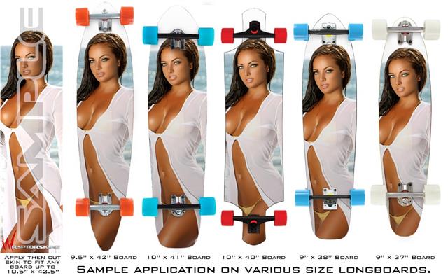 Our longboard skins are made so that one size fits boards up to 10” wide x 42” long. This means after applying the skin it you will trimming to fit you’re the shape of your board with a sharp utility knife.