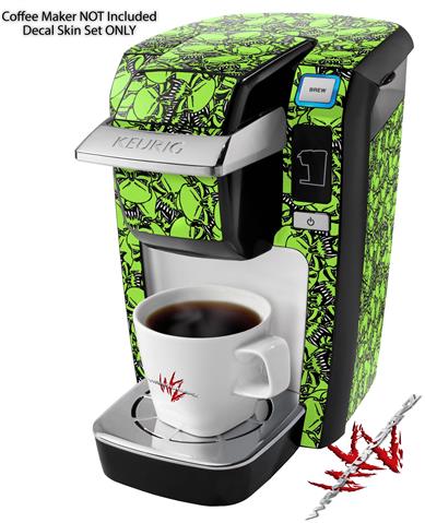 Decal Style Vinyl Skin compatible with Keurig K10 / K15 Mini Plus Coffee Makers Scattered Skulls Neon Green (KEURIG NOT INCLUDED)