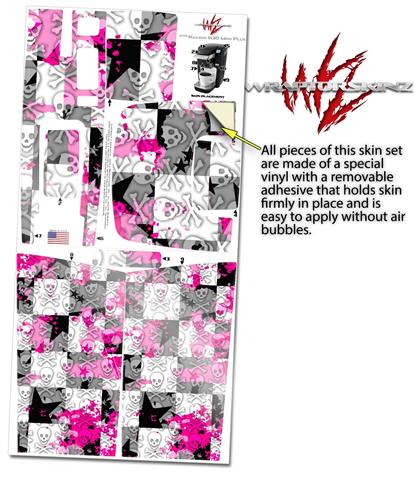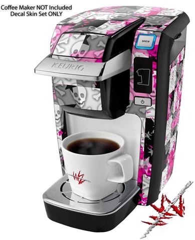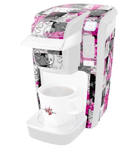Decal Style Vinyl Skin compatible with Keurig K10 / K15 Mini Plus Coffee Makers Checker Skull Splatter Pink (KEURIG NOT INCLUDED)