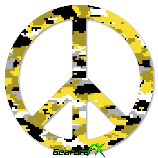 WraptorCamo Digital Camo Yellow - Peace Sign Car Window Decal 6 x 6 inches