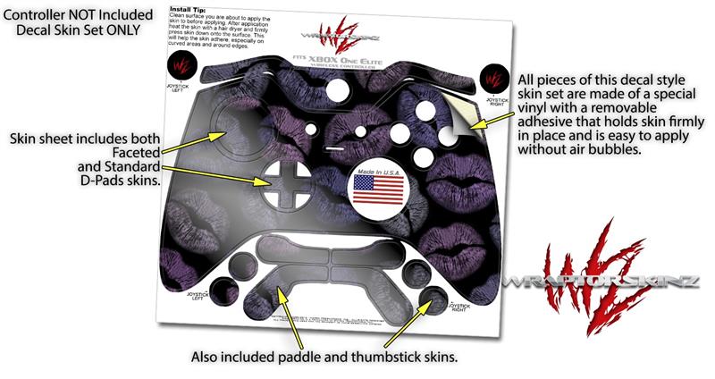 Purple And Black Lips - Decal Style Skin fits Microsoft XBOX One ELITE Wireless Controller
