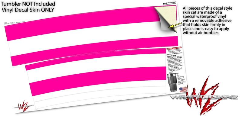 WraptorSkinz Skin Wrap compatible with RTIC 30oz ORIGINAL 2017 AND OLDER Tumblers Psycho Stripes Hot Pink and White (TUMBLER NOT INCLUDED)