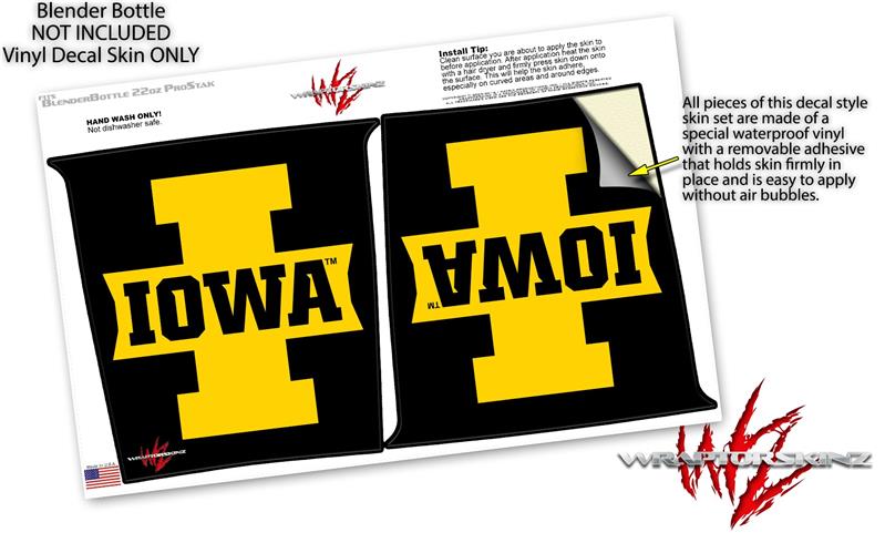 Decal Style Skin Wrap works with Blender Bottle 22oz ProStak Iowa Hawkeyes 04 Gold on Black (BOTTLE NOT INCLUDED)
