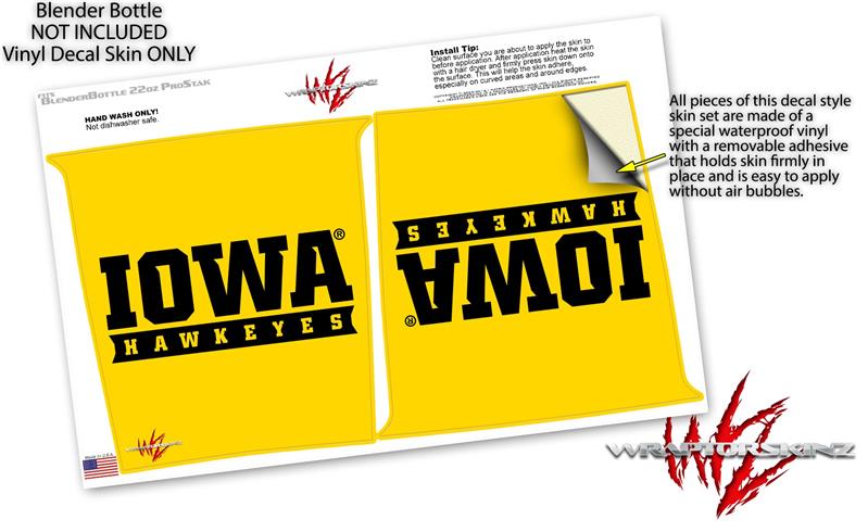 Decal Style Skin Wrap works with Blender Bottle 22oz ProStak Iowa Hawkeyes 03 Gold on Black (BOTTLE NOT INCLUDED)