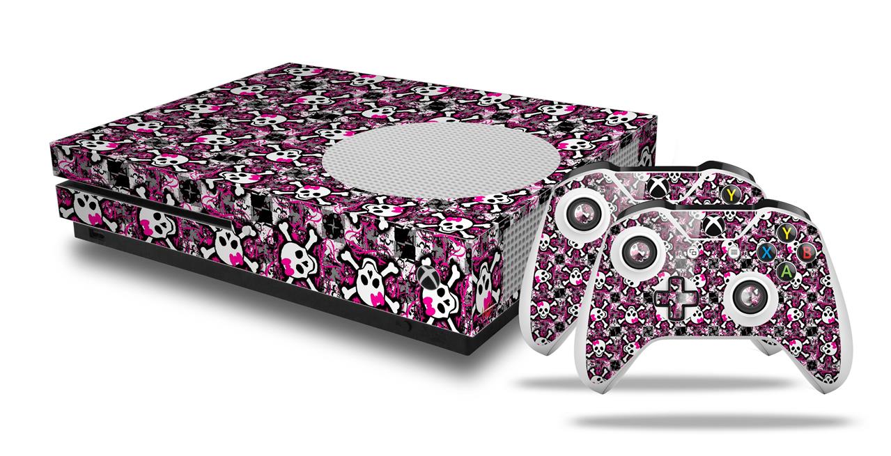 WraptorSkinz Decal Skin Wrap Set works with 2016 and newer XBOX One S Console and 2 Controllers Splatter Girly Skull Pink