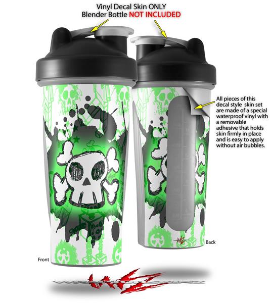 Decal Style Skin Wrap works with Blender Bottle 28oz Cartoon Skull Green (BOTTLE NOT INCLUDED)