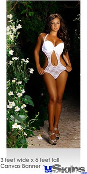 Whitney Jene White Lace Garage Decor Shop Banner 36"x72"