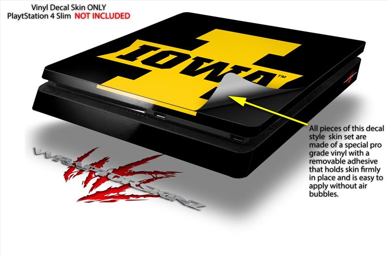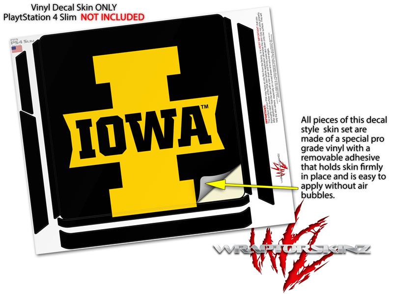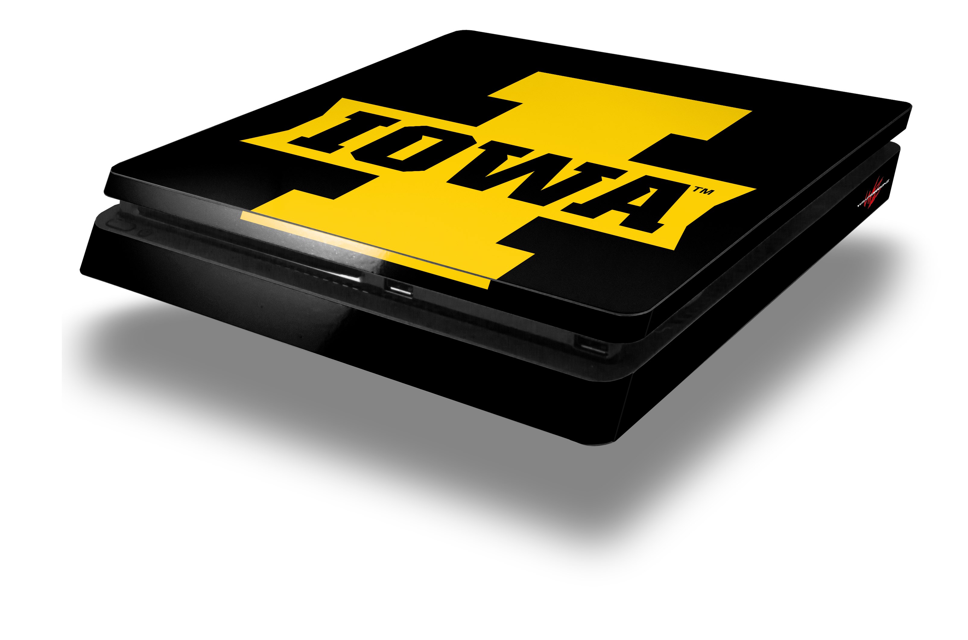 Vinyl Decal Skin Wrap compatible with Sony PlayStation 4 Slim Console Iowa Hawkeyes 04 Gold on Black (PS4 NOT INCLUDED)