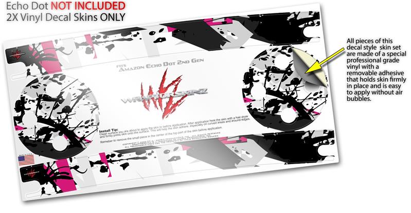 Skin Wrap Decal Set 2 Pack for Amazon Echo Dot 2 - Baja 0018 Fuchsia Hot Pink (2nd Generation ONLY - Echo NOT INCLUDED)