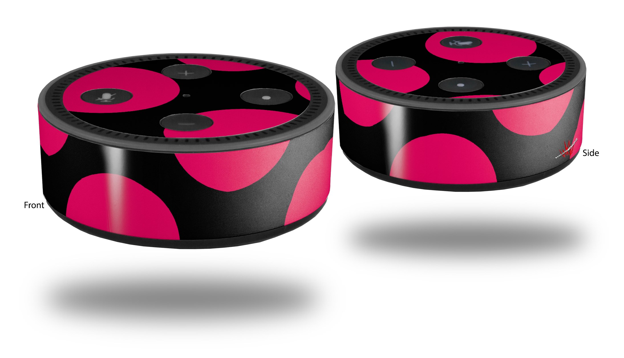 Skin Wrap Decal Set 2 Pack for Amazon Echo Dot 2 - Kearas Polka Dots Pink On Black (2nd Generation ONLY - Echo NOT INCLUDED)