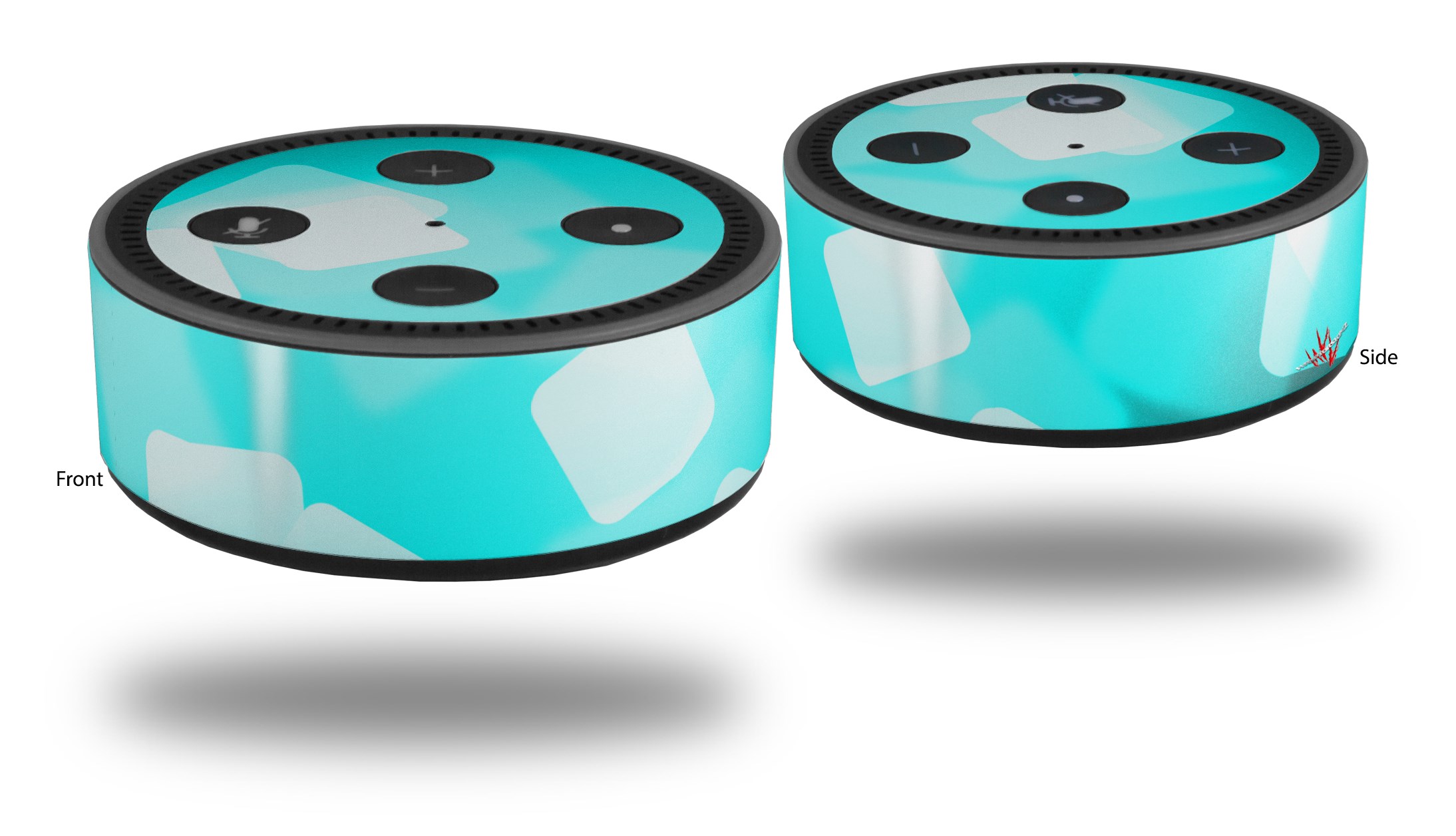 Skin Wrap Decal Set 2 Pack for Amazon Echo Dot 2 - Bokeh Squared Neon Teal (2nd Generation ONLY - Echo NOT INCLUDED)