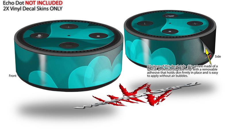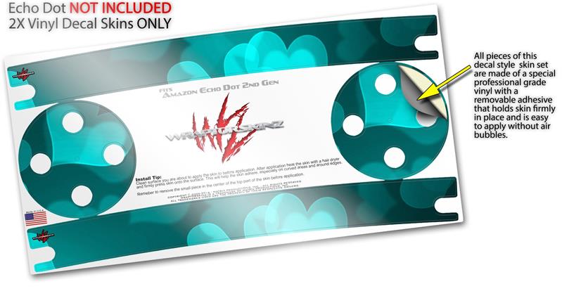 Skin Wrap Decal Set 2 Pack for Amazon Echo Dot 2 - Bokeh Hearts Neon Teal (2nd Generation ONLY - Echo NOT INCLUDED)
