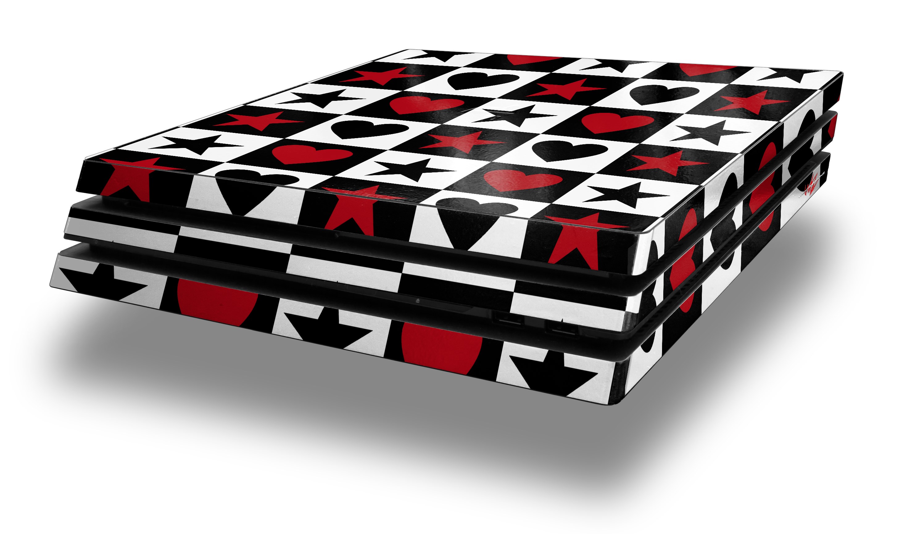 Vinyl Decal Skin Wrap compatible with Sony PlayStation 4 Pro Console Hearts and Stars Red (PS4 NOT INCLUDED)