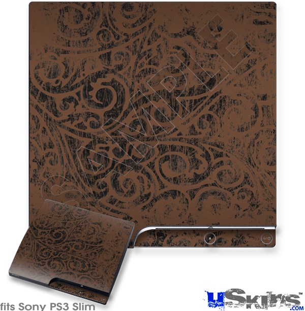 Decal Skin compatible with Sony PS3 Slim Folder Doodles Chocolate Brown