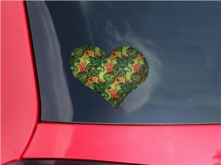 Famingos and Flowers Sage Green - I Heart Love Car Window Decal 6.5 x 5.5 inches