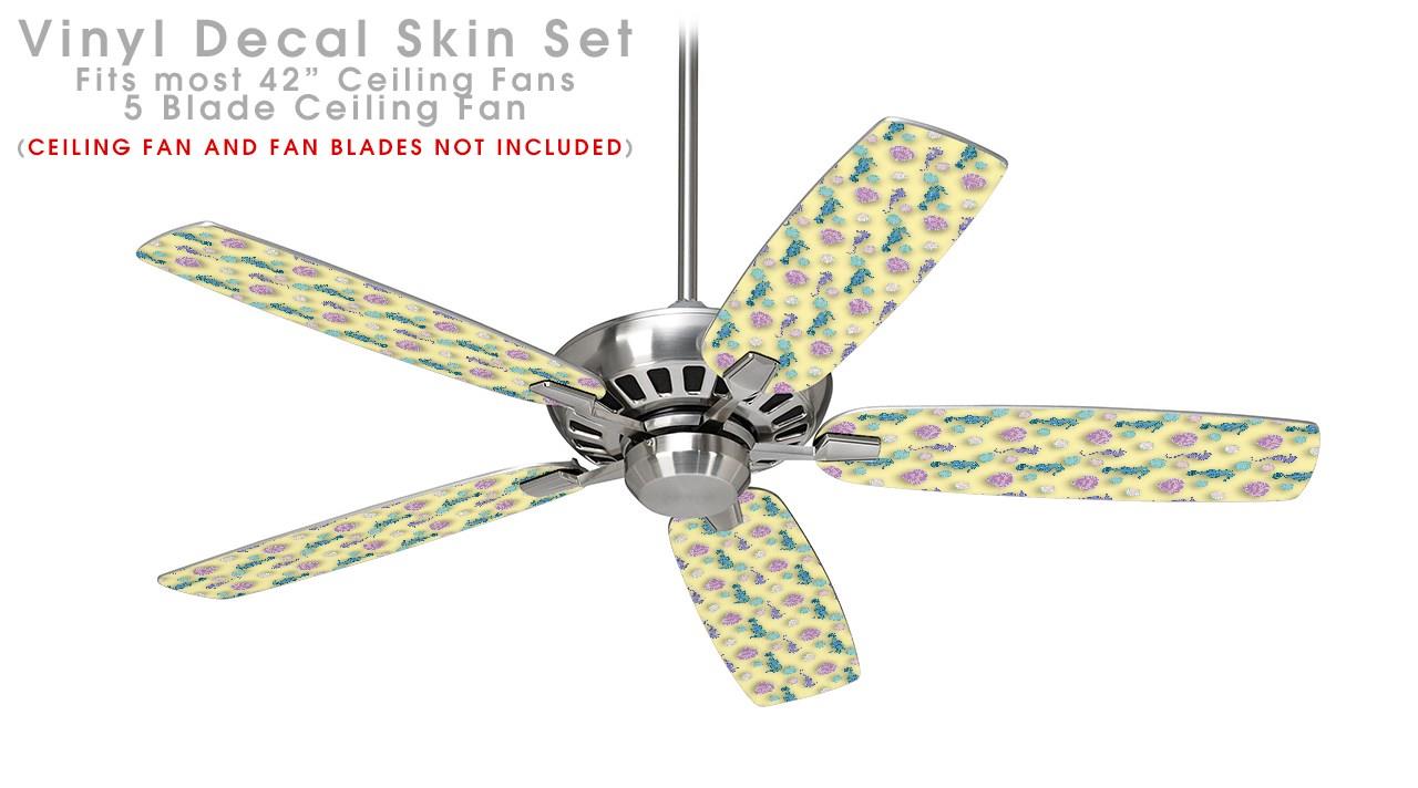 Seahorses and Shells Yellow Sunshine - Ceiling Fan Skin Kit fits most 42 inch fans (FAN and BLADES SOLD SEPARATELY)