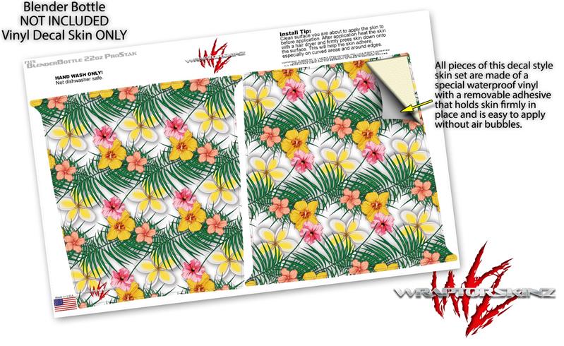 Decal Style Skin Wrap works with Blender Bottle 22oz ProStak Beach Flowers 02 White (BOTTLE NOT INCLUDED)