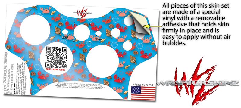 XBOX 360 Wireless Controller Decal Style Skin - Crabs and Shells Blue Medium (CONTROLLER NOT INCLUDED)