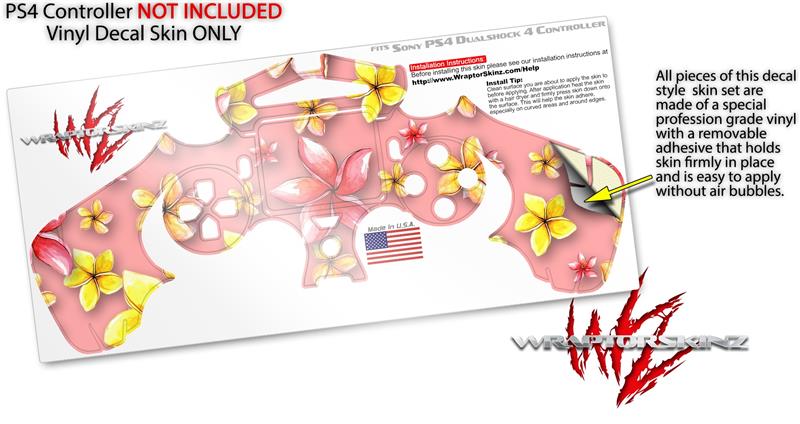 WraptorSkinz Skin compatible with Sony PS4 Dualshock Controller PlayStation 4 Original Slim and Pro Beach Flowers Pink (CONTROLLER NOT INCLUDED)