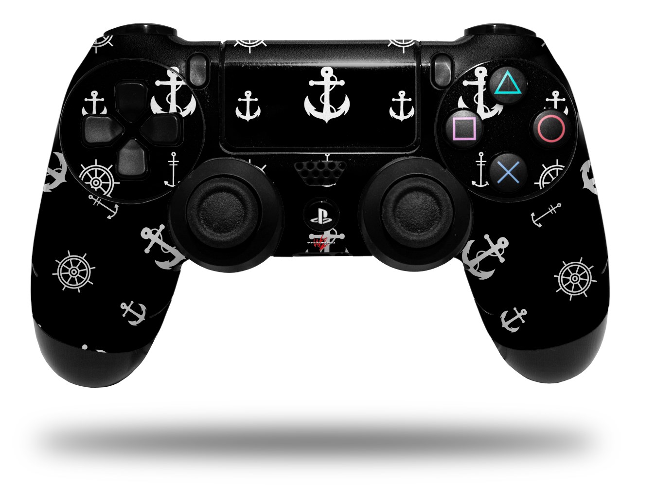 WraptorSkinz Skin compatible with Sony PS4 Dualshock Controller PlayStation 4 Original Slim and Pro Nautical Anchors Away 02 Black (CONTROLLER NOT INCLUDED)