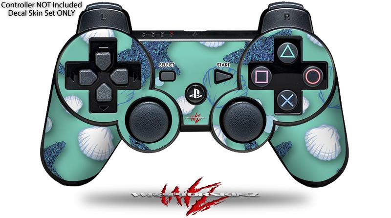 Sony PS3 Controller Decal Style Skin - Starfish and Sea Shells Seafoam Green (CONTROLLER NOT INCLUDED)