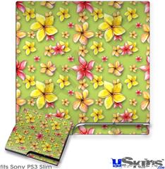 Decal Skin compatible with Sony PS3 Slim Beach Flowers Sage Green