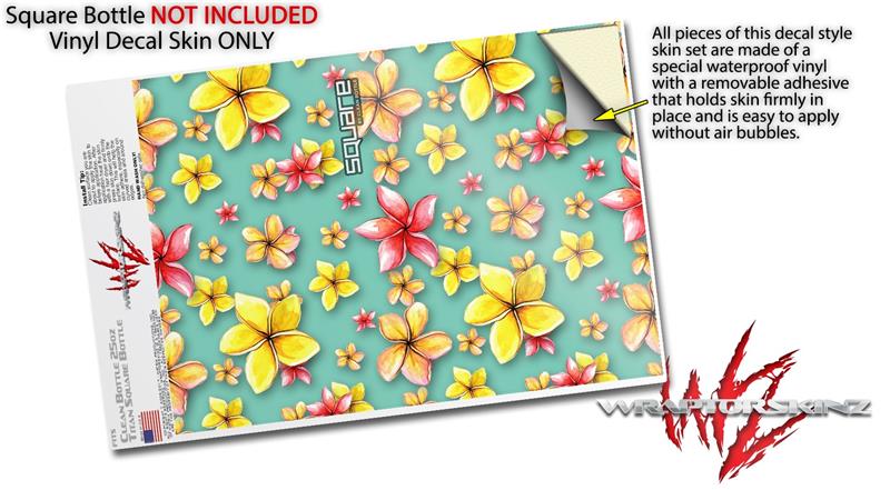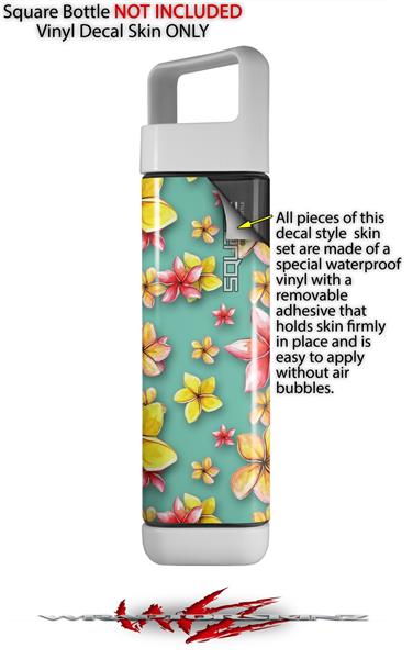 Skin Decal Wrap for Clean Bottle Square Titan Plastic 25oz Beach Flowers Seafoam Green (BOTTLE NOT INCLUDED)