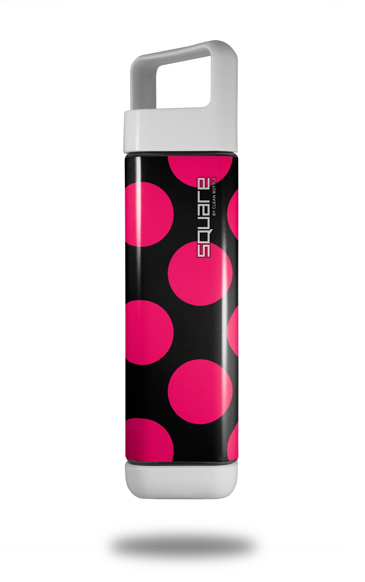 Skin Decal Wrap for Clean Bottle Square Titan Plastic 25oz Kearas Polka Dots Pink On Black (BOTTLE NOT INCLUDED)