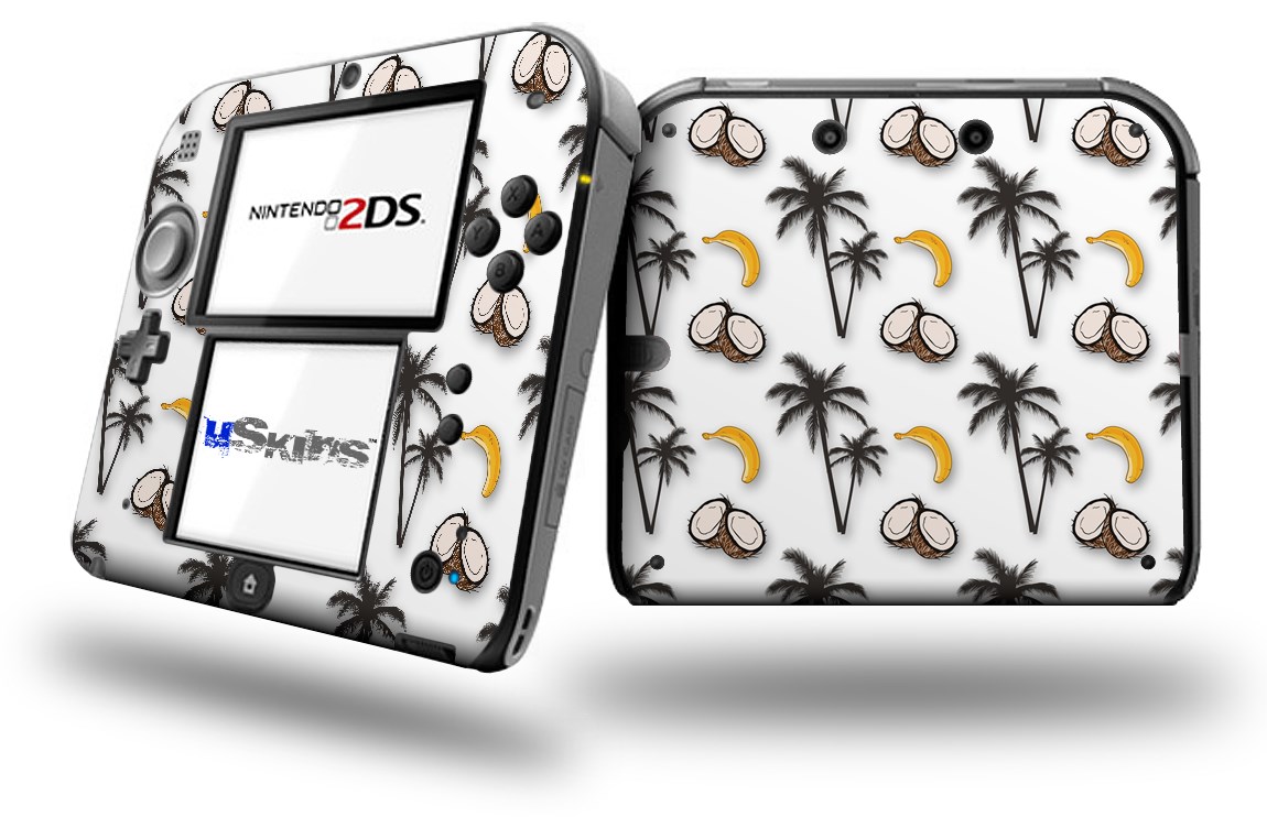 Coconuts Palm Trees and Bananas White - Decal Style Vinyl Skin fits Nintendo 2DS - 2DS NOT INCLUDED