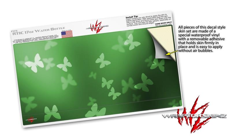Skin Decal Wrap for RTIC Water Bottle 17oz Bokeh Butterflies Green (BOTTLE NOT INCLUDED)