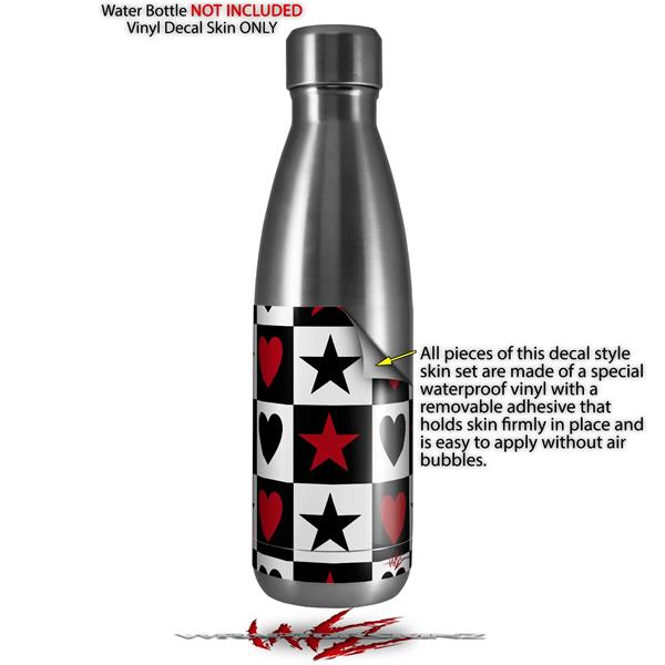 Skin Decal Wrap for RTIC Water Bottle 17oz Hearts and Stars Red (BOTTLE NOT INCLUDED)