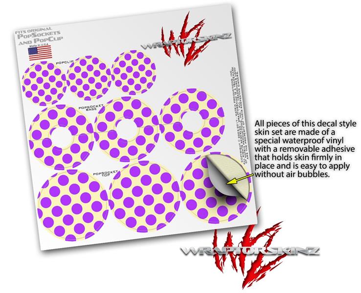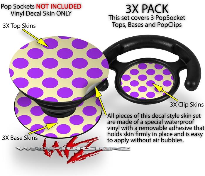 Decal Style Vinyl Skin Wrap 3 Pack for PopSockets Kearas Polka Dots Purple On Cream (POPSOCKET NOT INCLUDED)