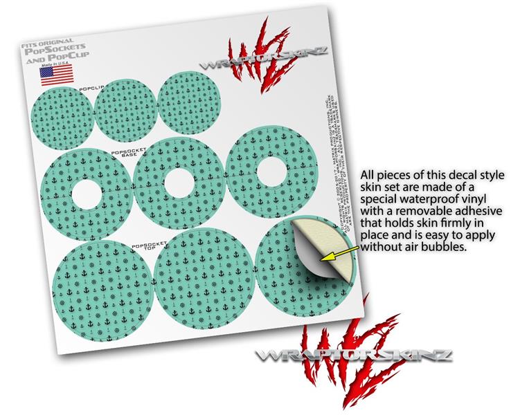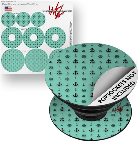 Decal Style Vinyl Skin Wrap 3 Pack for PopSockets Nautical Anchors Away 02 Seafoam Green (POPSOCKET NOT INCLUDED)