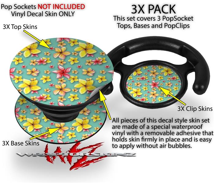 Decal Style Vinyl Skin Wrap 3 Pack for PopSockets Beach Flowers Seafoam Green (POPSOCKET NOT INCLUDED)